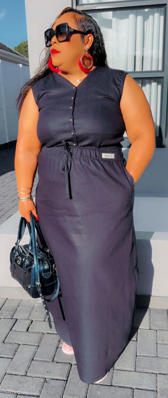 Crafted from flexible, stretchy denim, this set offers the perfect balance of structure and softness for all-day wear. The fashionable waistcoat adds a bold, modern edge, while the sleek skirt completes the look with elegance and flair.