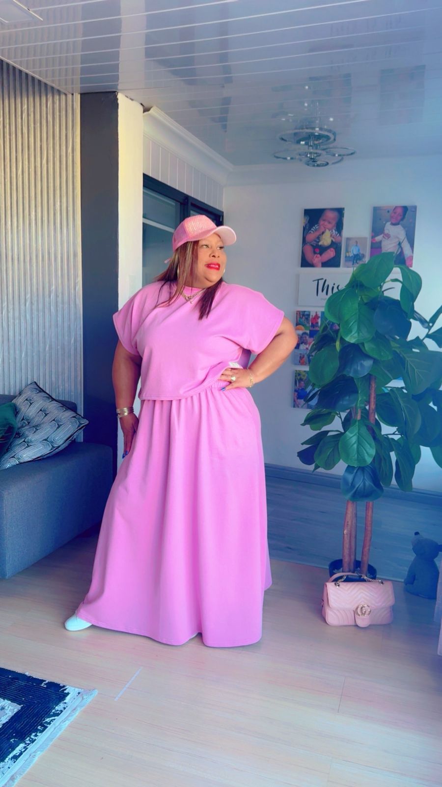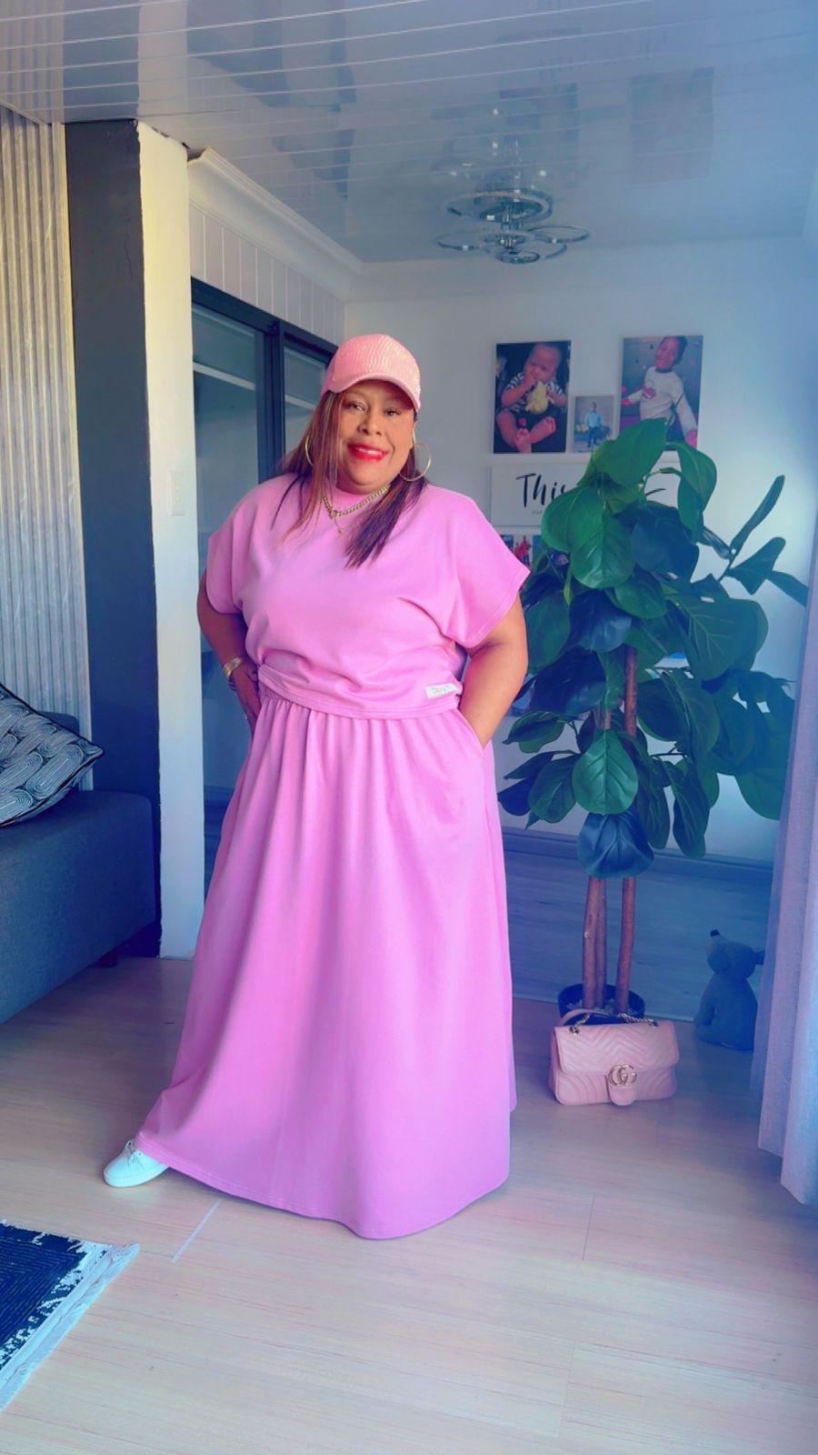 Step out in confidence with my custom-made pink long skirt and crop top set 💕 Perfect for a sporty yet feminine look !
