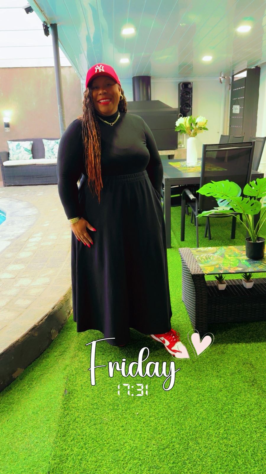 This kind of skirt pairs well with tackies for a comfortable, casual look that fits into the current athleisure and streetwear trends.